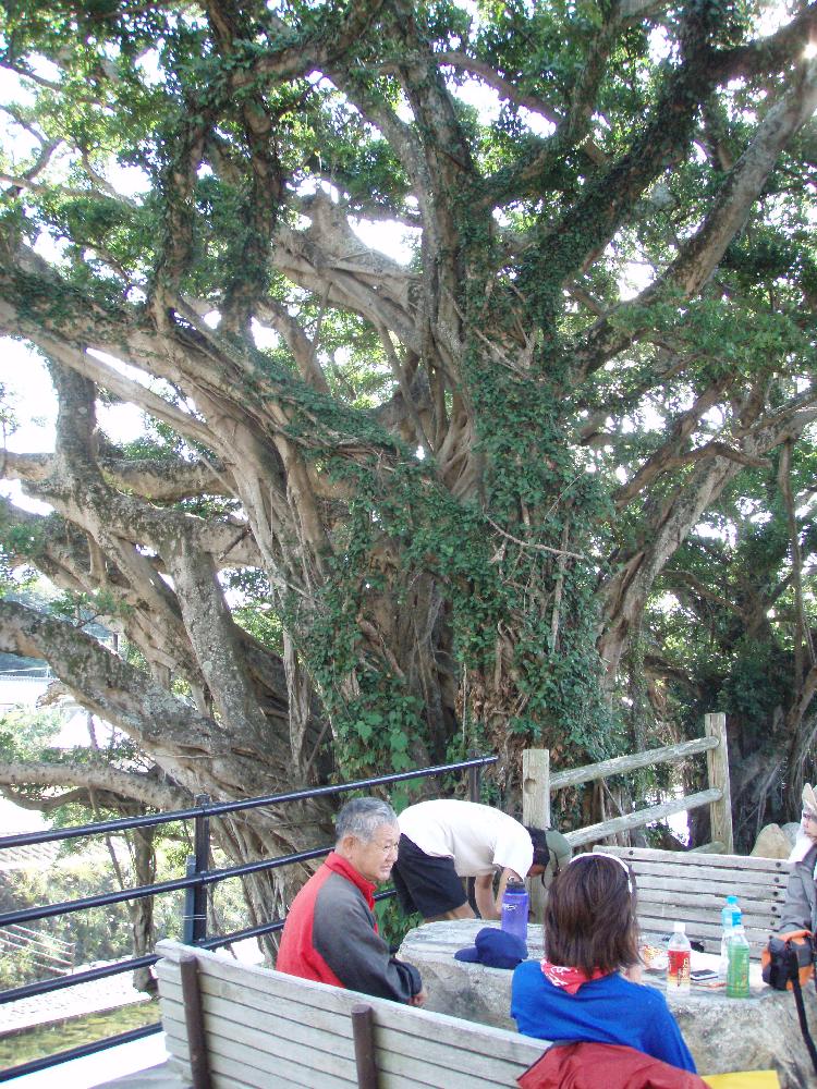 ガジュマルの樹が見事な中間の集落でランチ。樹のそばからは清水が湧き出しています。