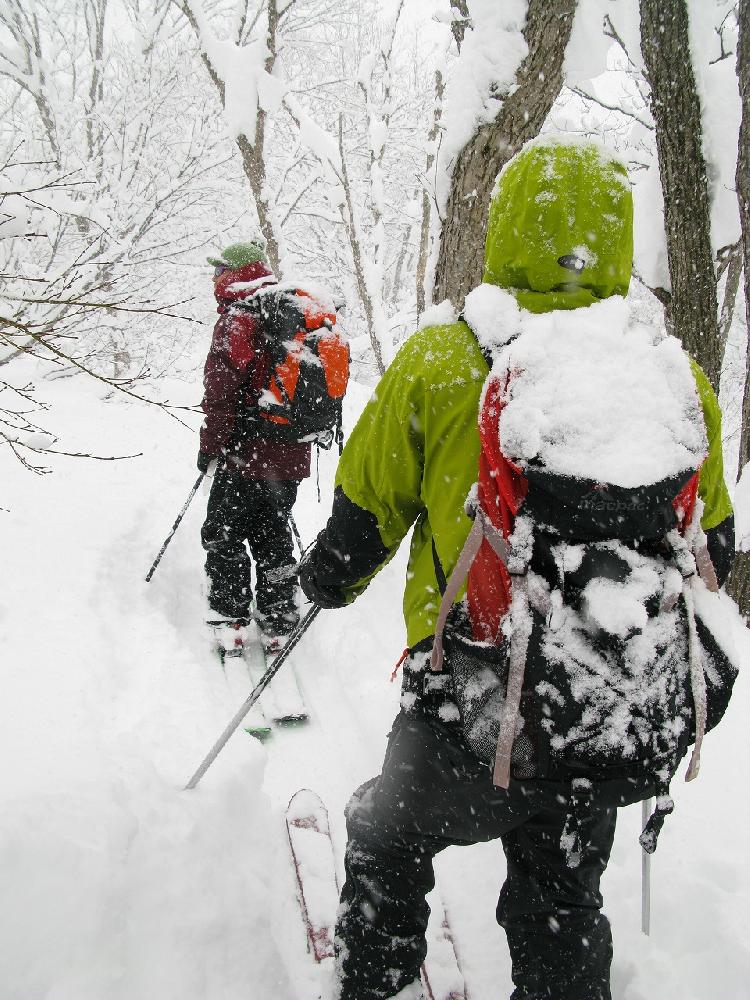 チェックポイントへと迷走する参加者を我々はテレマークスキーで追跡。歩くのは巧くなってきたぞ・・・。凄い雪です。