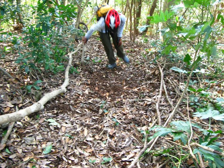 バイクで上から下って来ると、また前回と同様に違う尾根に入ってしまうそうです。踏み跡を見失ってしまうのです。