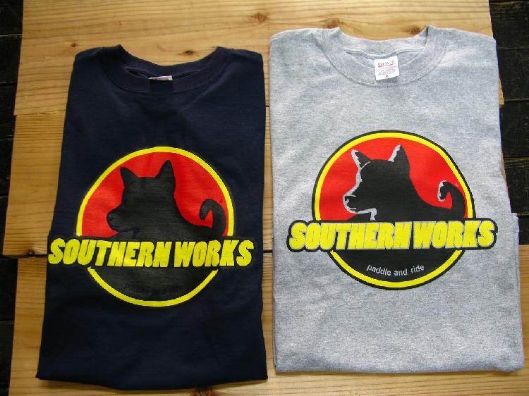 で、話は一気に変わりますが、お待たせしておりました(誰が?)、サザンワークスTシャツが完成致しました。グラフィックは2種類、各2色展開です。ボディーは6.1オンスのヘビーウェイトコットン(anvil製)です。