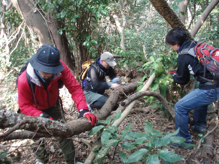 永い間、人が足を踏み入れていない森です。なので倒木や藪で障害物だらけです。