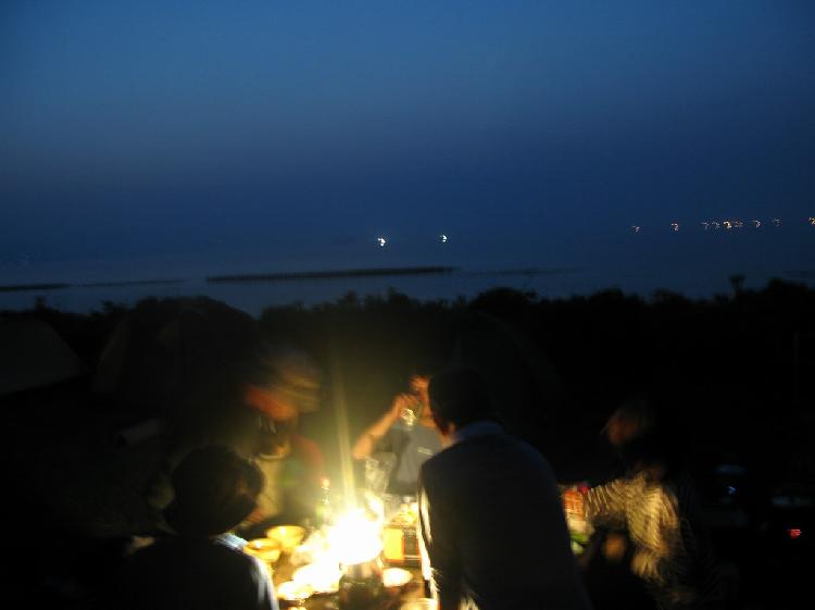 地元で仕入れたお刺身や干物、磯で獲った貝の炊き込みご飯、粗のお味噌汁などなどを貪りました。地元のSさん、U君も平戸の焼酎とテンプラ(練り物)を持って遊びに来てくれました。ありがとうございました。