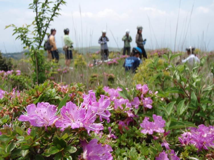 いつものトレイルでは、ミヤマキリシマが咲き始めていましたよ。
