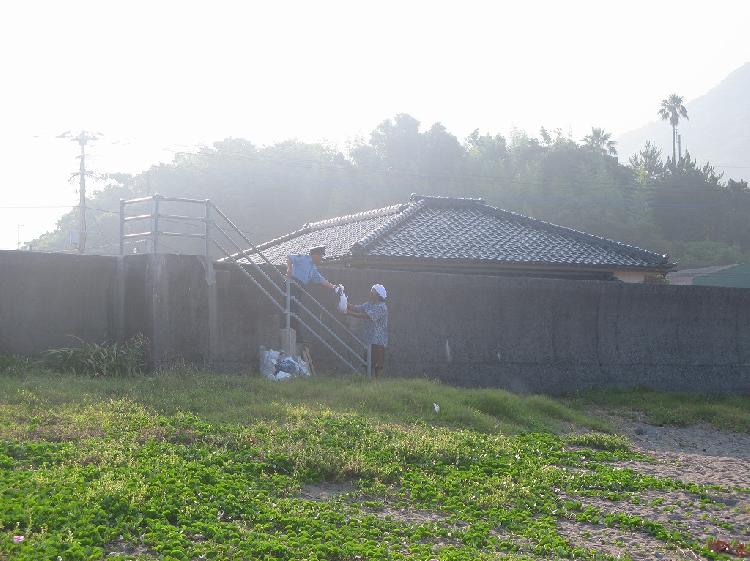 距離は短いものの、充実した一日でした。野間岬の根元、後浜のスロープに上陸し、ここが今晩の宿です。今日の晩御飯(当番制・今日は志郎ちゃん)は「野間の夕日丼」。ビールが旨い。