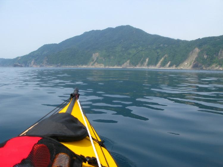 ベタ凪でも、各岬の先端では、潮目が複雑に形成されていました。