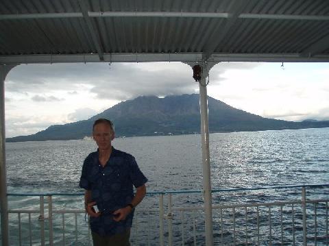 <写真>昨年の秋、セーリングトリップで来日時のダグ。錦江湾にて。