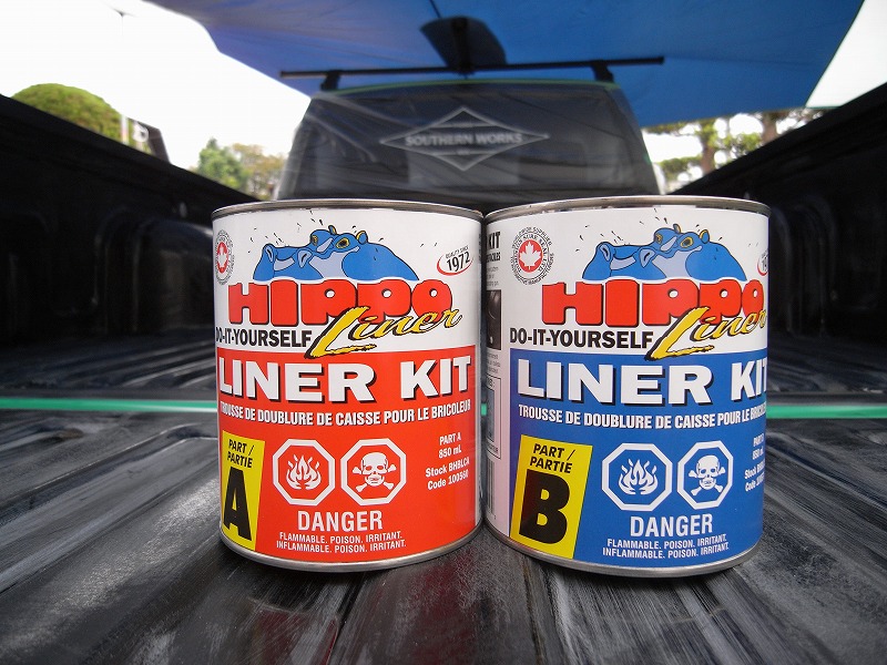 「Hippo Liner」というトラックの荷台をキズや錆から守る塗料です。カバの皮膚という意味でしょうか。トラック天国、カナダ製です。