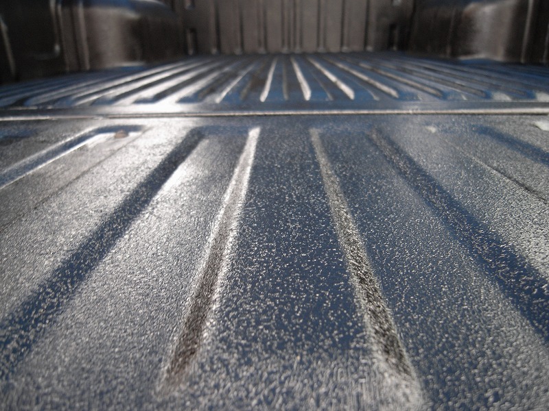 その後マスキングをしてハケやローラーで塗ります。出来上がりはこんな感じ。ローラーの効果で梨地状になります。素人でも驚くほど綺麗に仕上がります。これで潮まみれのフネや道具を積んでも大丈夫。この上からペイントも出来るらしいので、サビサビルーフでお悩みの方、思い切ってボディーにも行けるんじゃないでしょうか。