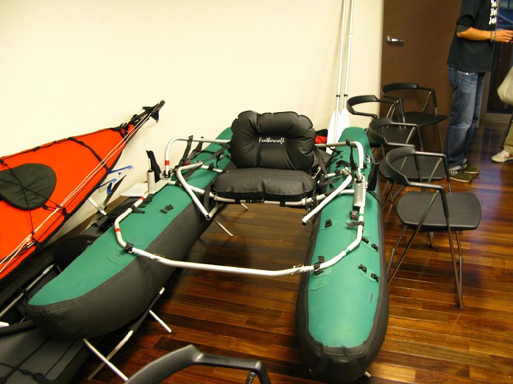 座ってローインングで進みます。シート下のアタッチメントを降ろすと立ってキャスティングもできます。カヤックと同じく毎回唸らされる作り込み様です。