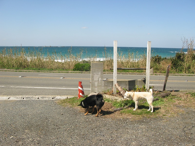 白黒の雑種2匹(パクチー&ロッキー)は同い年。性格の違いが見ていてウケます。