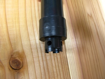 Feathercraftオーナーの方などでご希望の方にはFeathercraftブランドのポンプ同様にサイドに穴開け加工してお渡しします(以下写真。排水時にシーソックの吸い込みを防ぐ為です)。