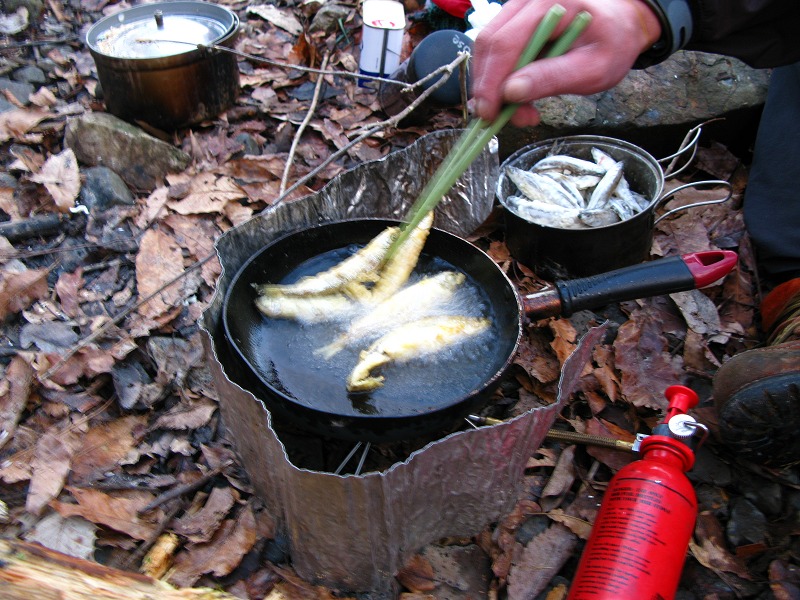 グランストリーム大瀬氏が夜なべして網で獲ってくれていたワカサギを揚げてくれました。感動の味です。
