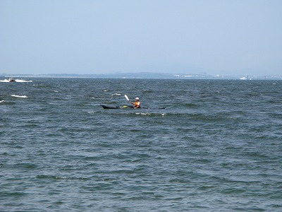 対岸に見えるのは海の中道です。アーバンな海も荒れるときは荒れます。波間を行くウィスパー。