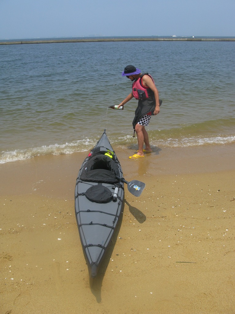 進水式は白波(芋焼酎)で。良く考えると縁起が良いような悪いような酒の名前だな。