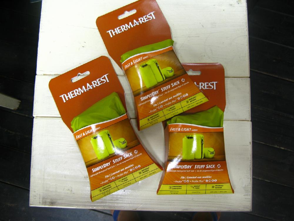 サーマレスト用のドライスタッフサックです。ウルトラライト、プロライトのショートならSサイズで、レギュラーはMサイズで。