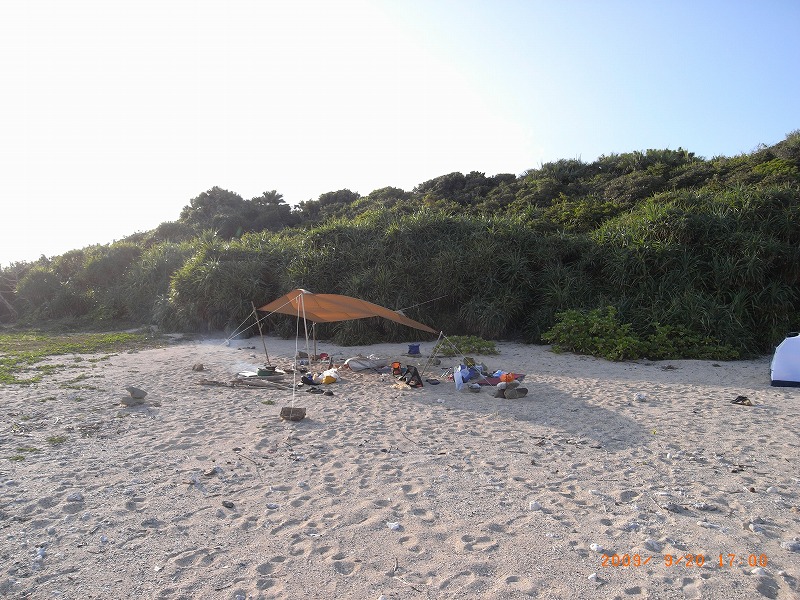 快適なキャンプサイト。良い季節になりました。後ろはアダンの林。