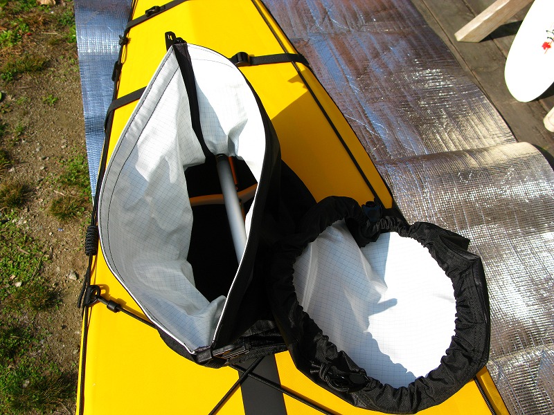 ハッチの開口部とハッチカバーは素材変更で、ダブルコートナイロンになりました。NEWスプレースカート&シーソックと同素材です。これによりシーム、コーティングの耐久性が格段に向上しました。
