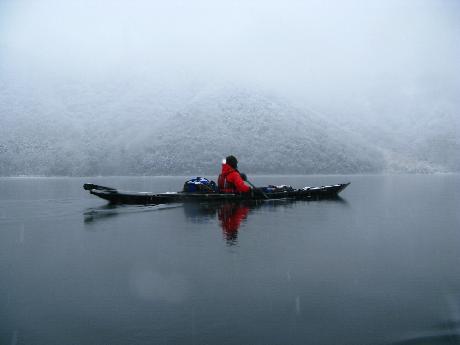 奥琵琶湖のフェザー大将、グランストリームの大瀬志郎氏のガイドで厳冬期の奥琵琶湖を巡ります。毎年恒例の冬の巡業です。今回はアフターパドリングも気合入れます。