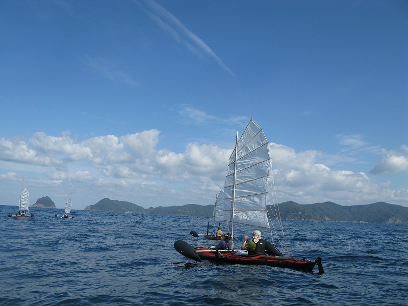 イベント後は有志によるセーリングカヤックのクリニックを受けました。「カヤックに帆」というと違和感を覚える方も多いとは思いますが、百聞は一回の体験に勝りません。スキンカヤックという北方の伝統的な乗り物に、南方の帆かけカヌーが融合した、文化的にもかなり面白い乗り物です。昔から脈々と受け継がれる(辛うじて)人力航海の技術は現在でも一部の人々により進化を続けていると言っても過言ではないでしょう。ジョージ・ダイソンがトラディショナルカヤックを現代に広めたように、この場合はフェザークラフト社オーナー、ダグラス・シンプソンのアイディアと、沖縄カヤックセンターの仲村さんのサバニ技術(製作も)の融合です。私も昨年枕崎→甑島の旅で経験したきりでしたが、今回初めて系統的な講習を受けることが出来、大変有意義な時間をすごせました。とにかく遠くへ行きたくなる乗り物です。