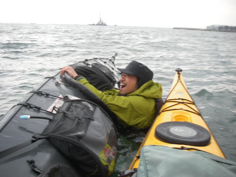 先鋭的な活動で定評のあるカヤック青年団が本日、中洲(ナカス・ススキノ・ニューヨーク、の中洲)のパトロールに出かけたそうです。中洲から海へ出た所で撃沈するS団員。まだまだ修行じゃ。