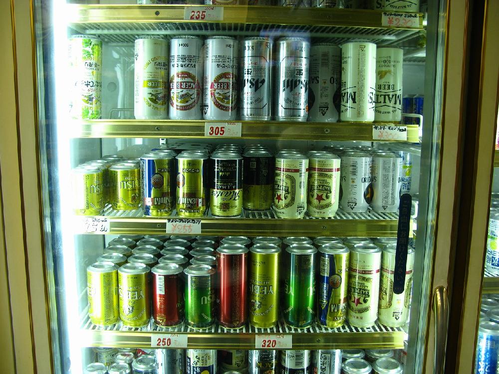 そしてこの酒屋さんでは缶類はすべて逆さに置かれています。なぜか?