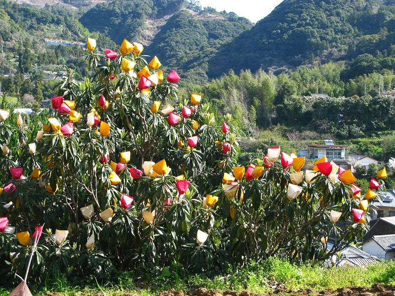 長崎・茂木地区はびわの産地です。びわの実に被せる袋はなぜかカラフルで、山全体に花が咲いたような状態になっていました。長崎はすっかり春です。