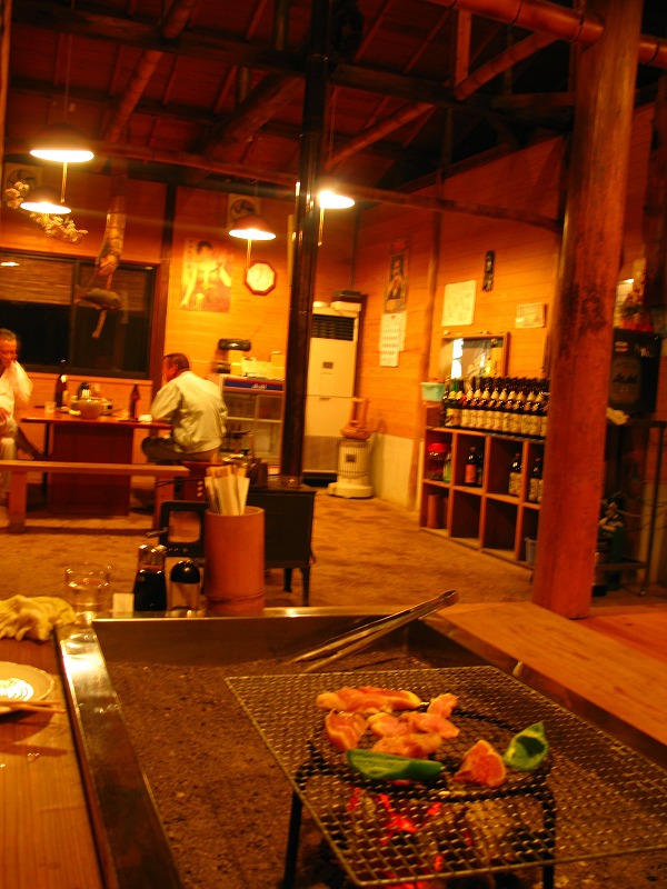 そしてナイトライフ。土間と本気モードの薪ストーブが良い感じの地鶏&猪&鮎のお店です。結構な山奥の川のほとりにあります。酒はもちろん「白霧島」。「黒」信仰は博多だけですよ~。いろいろサービスしてもらいました。地元の「アル中組合」(大将談)の方々が飲んでおられました。
