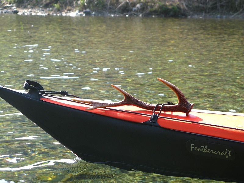 Oさんが拾った鹿の角。サルの軍団に遭遇したり翡翠を見たり、カヤックの下を巨大な鯉の群れが悠々と泳いで行きました。