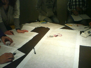 昨夜は若者たちに地図の読み方を教えていました。などと言うとエラソーに聞こえますが、自分が習った事も無い事を人に教えるのは大変です。磁北線を引き、正置して目標までの角度を測る。一連の作業は癖をつけるしかありません。パドリングを教えるほうが遥かに簡単です。写真で机代わりにしている台は、金属塗装がしてあって、それぞれのコンパスの針が違うところを指して大変でした。