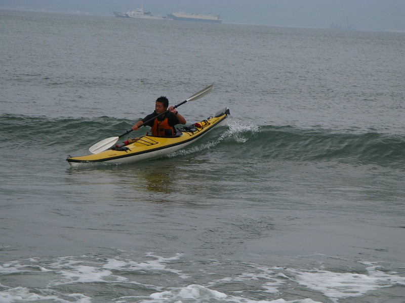 5メートル前後あるシーカヤックは、波乗りのためにはデザインされていません。そのため「波に乗らない」着岸が必要になります。波乗りのための乗り物、技術はまた全然違います。「乗らない」ためにはまず「乗ってみる」経験も必要です。