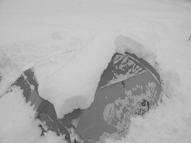 雪に埋もれるVE-25。窒息に注意。夜中に起きない人はナイフの携行をお忘れなく。