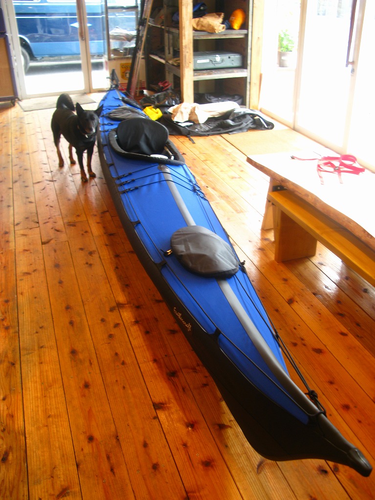 当店第一号のFeathercraftニューモデルHeron。Heronは「青鷺」の意。この青鷺はバンクーバーから到着したばかりですが、来月には北米に舞い戻ってアラスカ沿岸を約2ヶ月間旅する予定の忙しいやつです。