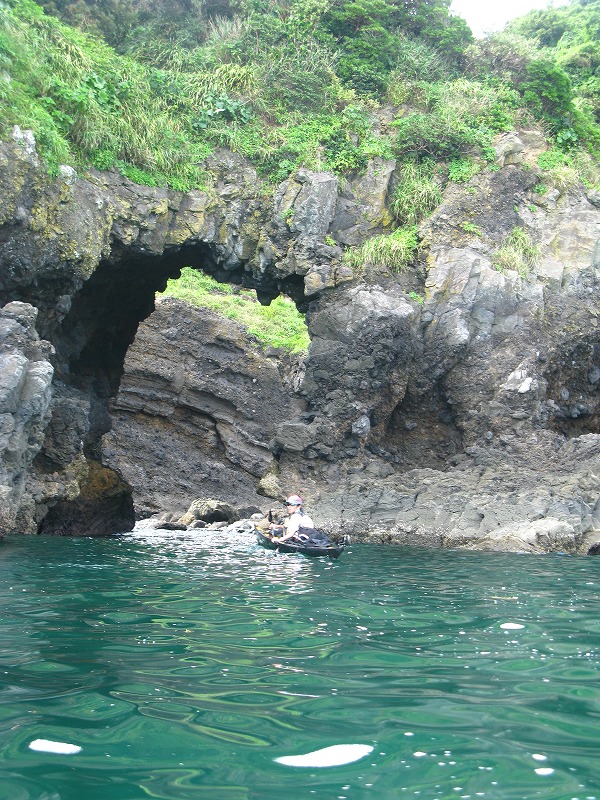 島の南端にはこんな洞窟もあります。潮位が低く入ることはできませんでした。