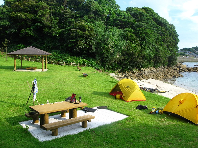 佐世保のフリーダムさんのカヤックセンターから出艇して、約2時間弱でしょうか。今回フェザークラフトには収納バッグとカートもしっかり入っているので、翌日漕ぐ意欲を無くしてもフェリーで帰れます。こういうところだけしっかりしている我々です。