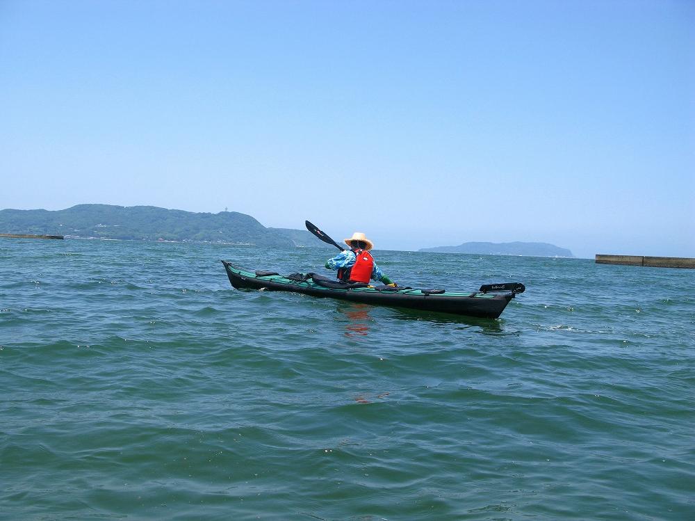 堤防間際のバタつく海面でバーチャル潮目体験もしました。そんな海面の動きもしなやかな船体が吸収してくれるのがスキンカヤックの利点でもあります。常にキールが水に漬かっているので安定して進みます。